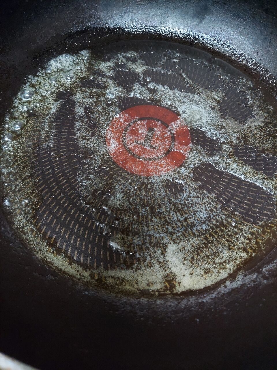 ③ フライパンにオリーブオイルを熱し、フライパンが熱くなったらバターを入れる。