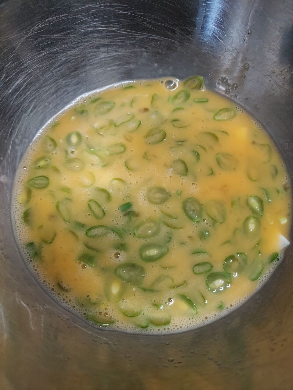 薄切りにしたいんげんとチーズを入れて、シャキとろ食感に。